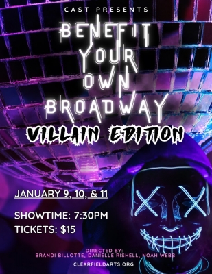 Enjoy a captivating performance of musical theater! Music, dancing, singing... What more could you ask for?! Oh... VILLIANS! Enjoy all of the fun, edgy, and dark songs from some of your favorite Broadway shows. Rated PG-13. Directed by Brandi Billotte, Danielle Rishell, Noah Webb.