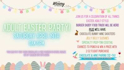 Plus we’ll have: Chocolate Bunny wine shooters, Jelly Belly Slushies, Specialty Peep-tini Cocktail, Chances to punch & win a prize with 2 oz flight purchase plus a special Dan Smith’s Chocolate & Wine pairing! (Pairing is $12 plus tax and must be paid by 4/16.)