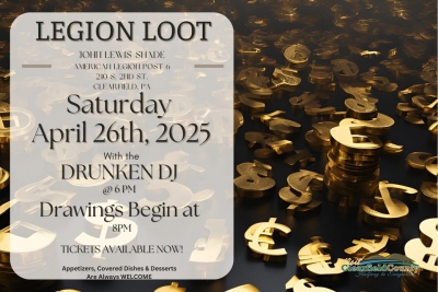 Annual Legion Loot Event Benefits The John Lewis Shade American Legion Post 6. Tickets are available now. Contact the Legion or Legion member to get your tickets today.