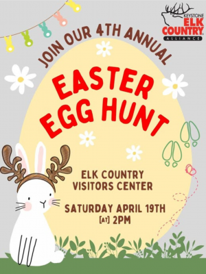 Saturday, April 19th @ 2PM The Elk Country Visitor Center will be hosting its 4TH ANNUAL EASTER EGG HUNT! FREE and FAMILY FRIENDLY event, as always!
