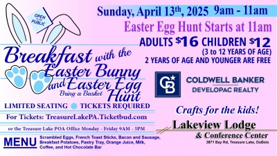 Join us for our Annual Breakfast with the Easter Bunny and Easter Egg Hunt.