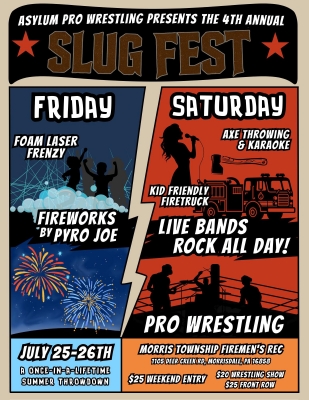 Let’s talk about Friday July 25 ….Friday night Specifically …The Starts of Slugfest… Camp set up day will end with a Fireworks Display thatll amaze you! Sponsored by PYRO JOE …His fanale will take your breath away!!! And then Foam Lights/Lasers dance Party!!! 2 Foam cannons ..Lights n Lasers… and for the Adults . We have a few comedians who have agreed to preform and some music that will be played live!!!! And that’s Just Day 1…. See you at Slugfest!!!!