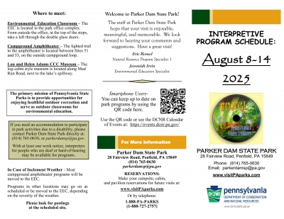 Call the park office to register (814)765-0630. Parents are welcome to attend.