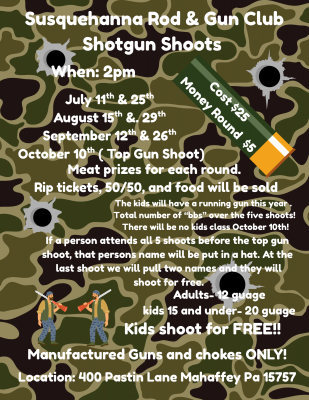 If a person attends all 5 shoots before the top gun shoot, that person's name will be put in a hat. At the last shoot, we will pull two names, and they will shoot for free
