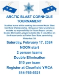 Double teams will be seeking the coveted Arctic Blast Cornhole Championship. Bring your hand warmers as we take no responsibility for frozen fingers or toes. Double Elimination, played outside (like it should be) on the frozen tundra at Parker Dam State Park during Winterfest 24'.