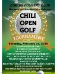 Chili, 2 free drinks tickets, and prizes to follow golf in the country club banquet room