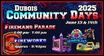 Community Days Returns for 2025, along with the traditional Firemen's Parade! Hosted once again by the Dubois Fire Department! Join us in celebrating this annual event, June 13th 5pm-10pm & June 14th 2pm-10pm. Inflatable rides & stations provided by Invictus Entertainment! Updates & Details on the Dubois Fire Department Page.